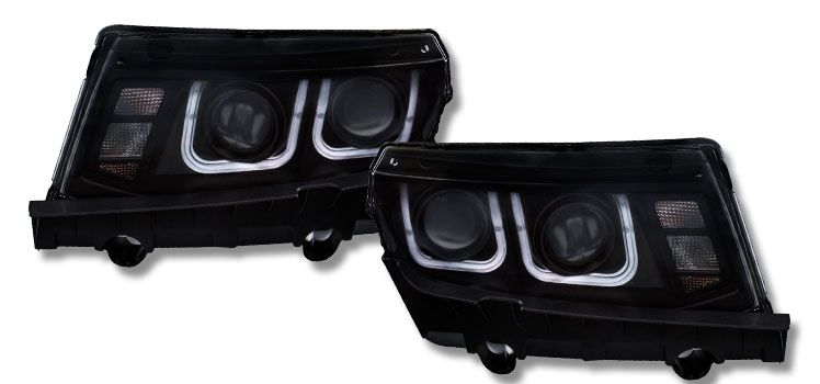 NTR2844B 2014-2015 Chevy Camaro U-Bar Projector Headlights Black Housing / Clear Lens |